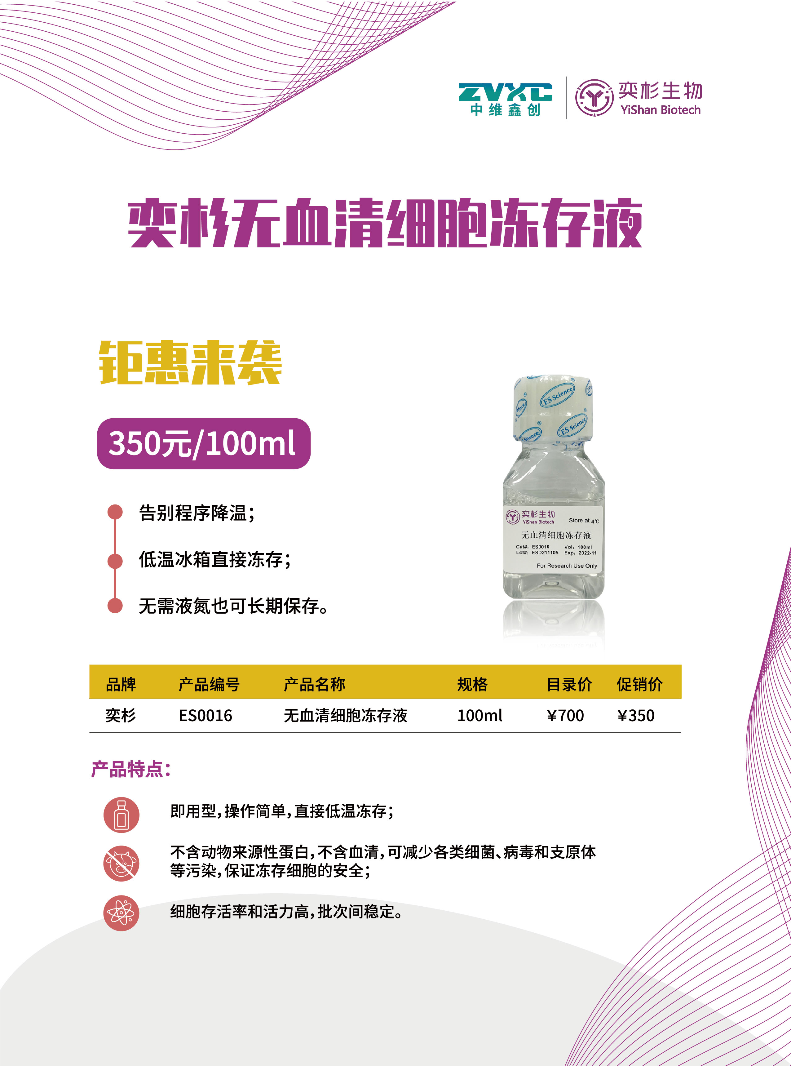 奕杉无血清细胞冻存液