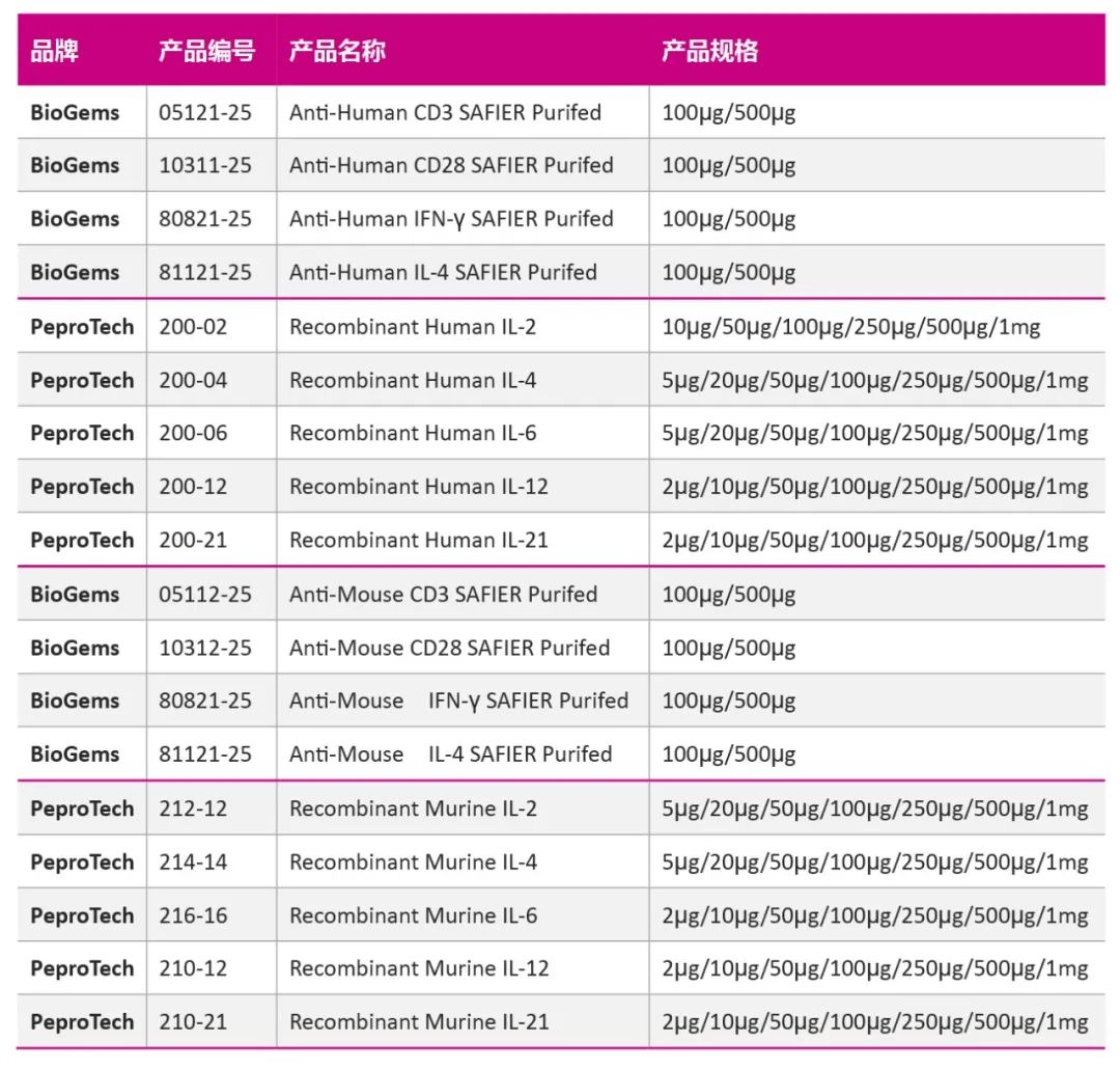 PeproTech还将提供人和小鼠T细胞增殖及亚群分化培养方案,以便您更好的进行实验操作~
