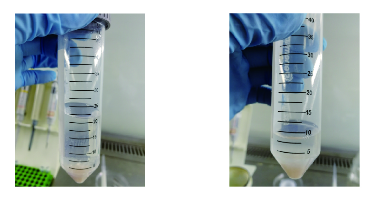 图1:小肠组织清洗澄清后的上清液 图2:吹打后的小肠上清液,含有小肠隐窝
