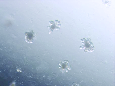 图6:小肠类器官传代在基质胶中培养3天结果