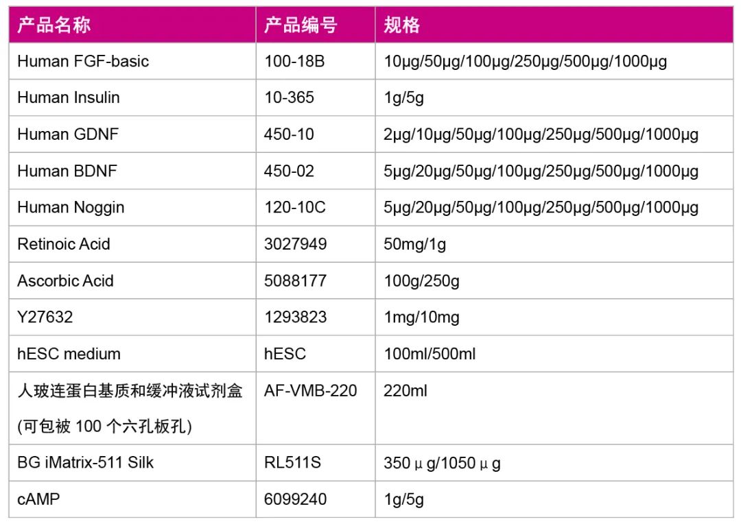 我们提供人脑类器官培养所需的各种细胞因子及小分子,并提供人ESC/iPSCs培养所需的培养基及培养器皿包被基质,产品详情如下表: